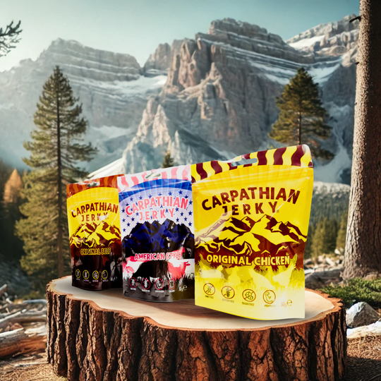 Karpaty Jerky je první 100% rumunský jerky, který přináší dobrodruhům autentickou chuť našeho terroiru. Hovězí jerky má křupavou texturu, zatímco kuřecí je měkčí, ideální pro různé preference.