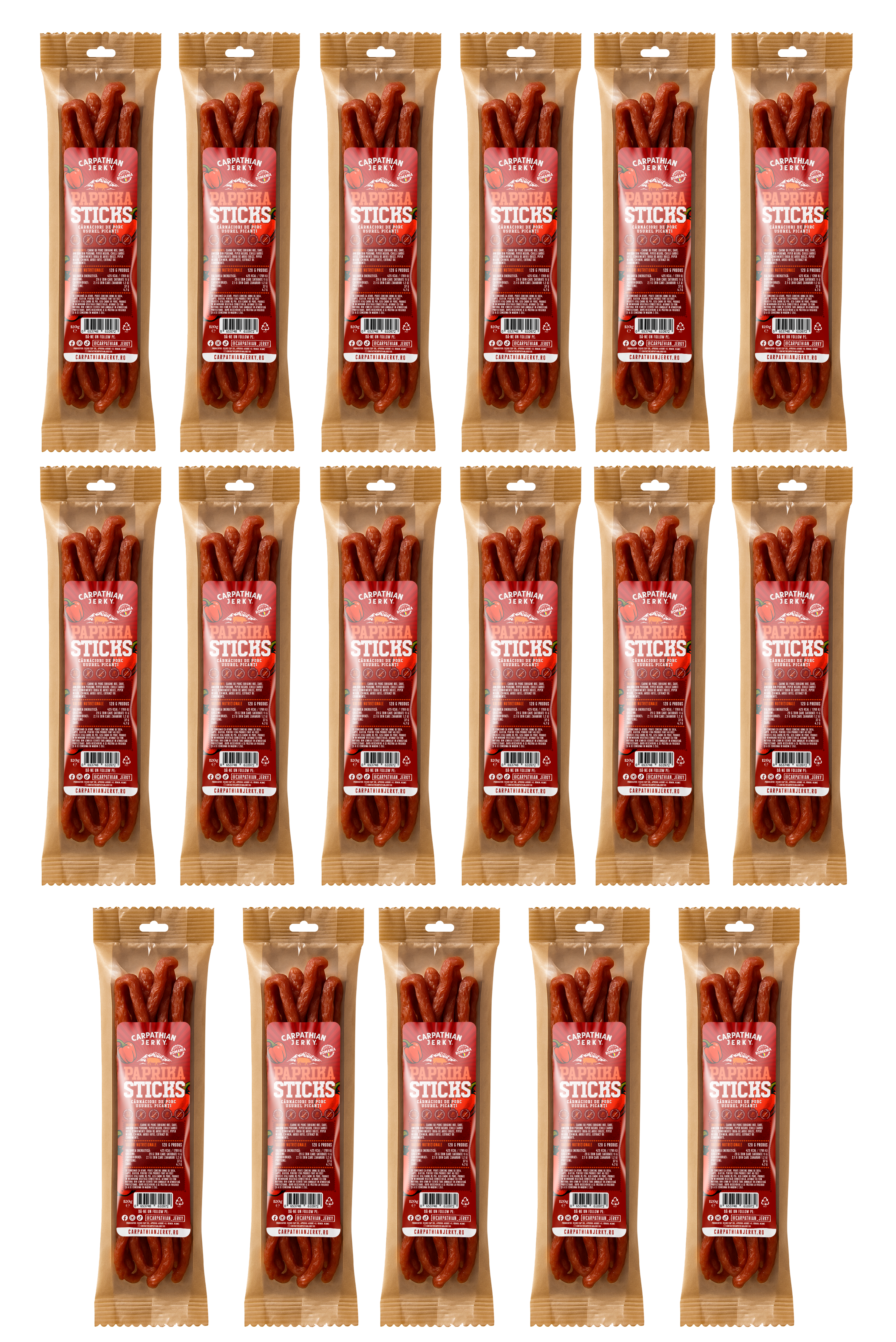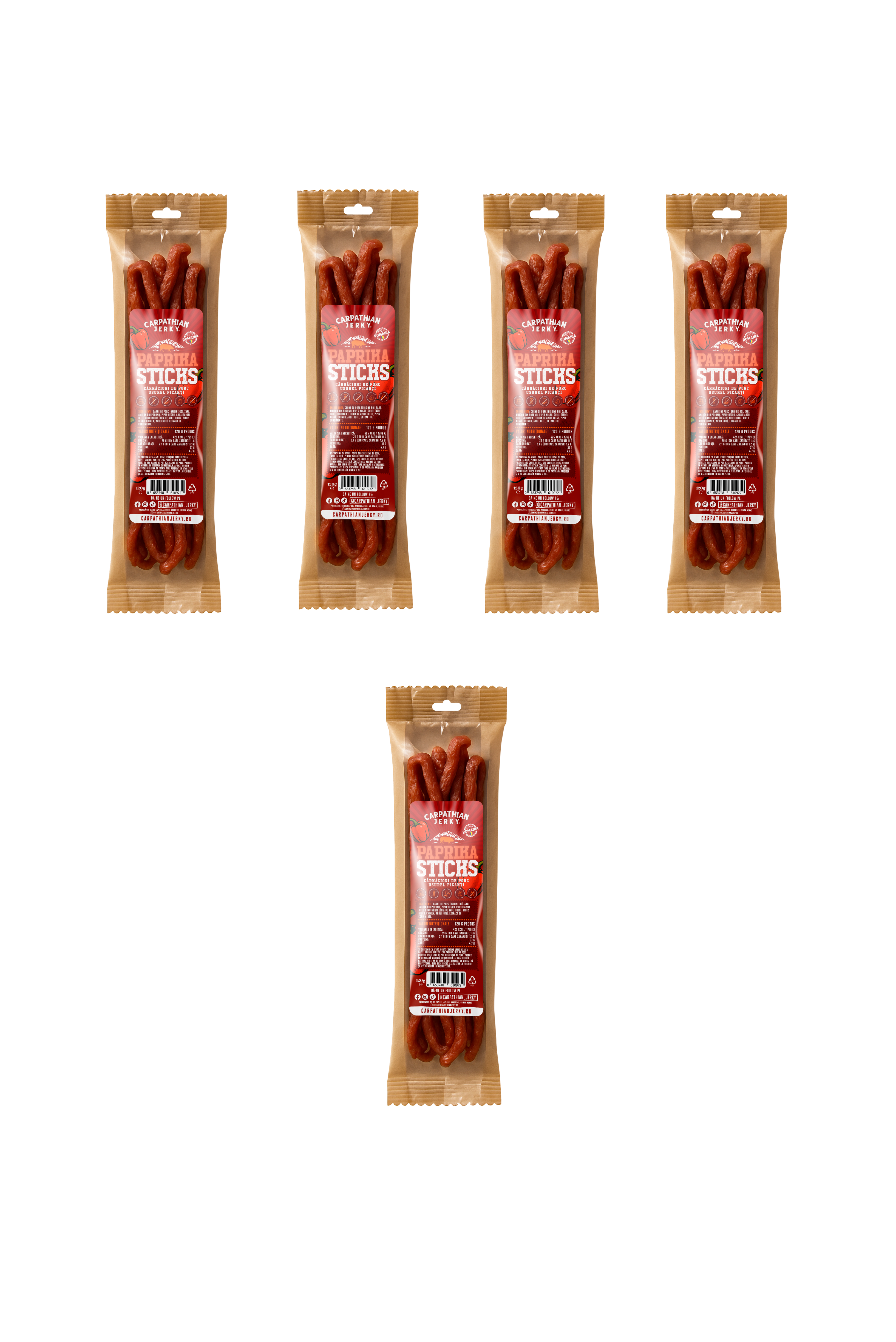Paprikové tyčinky z rumunského vepřového masa, ochucené sladkou paprikou, chilli a pepřem, poté pomalu sušené, aby si uchovaly autentickou vůni a měkkou texturu. Přirozeně uzené tvrdým dřevem, tyto tyčinky kombinují karpatskou tradici s kořeněnou notou, která rozproudí chuť k jídlu. Bez lepku, bez GMO, bohaté na bílkoviny — čistá svačina s charakterem, která vás doprovází kamkoli.
